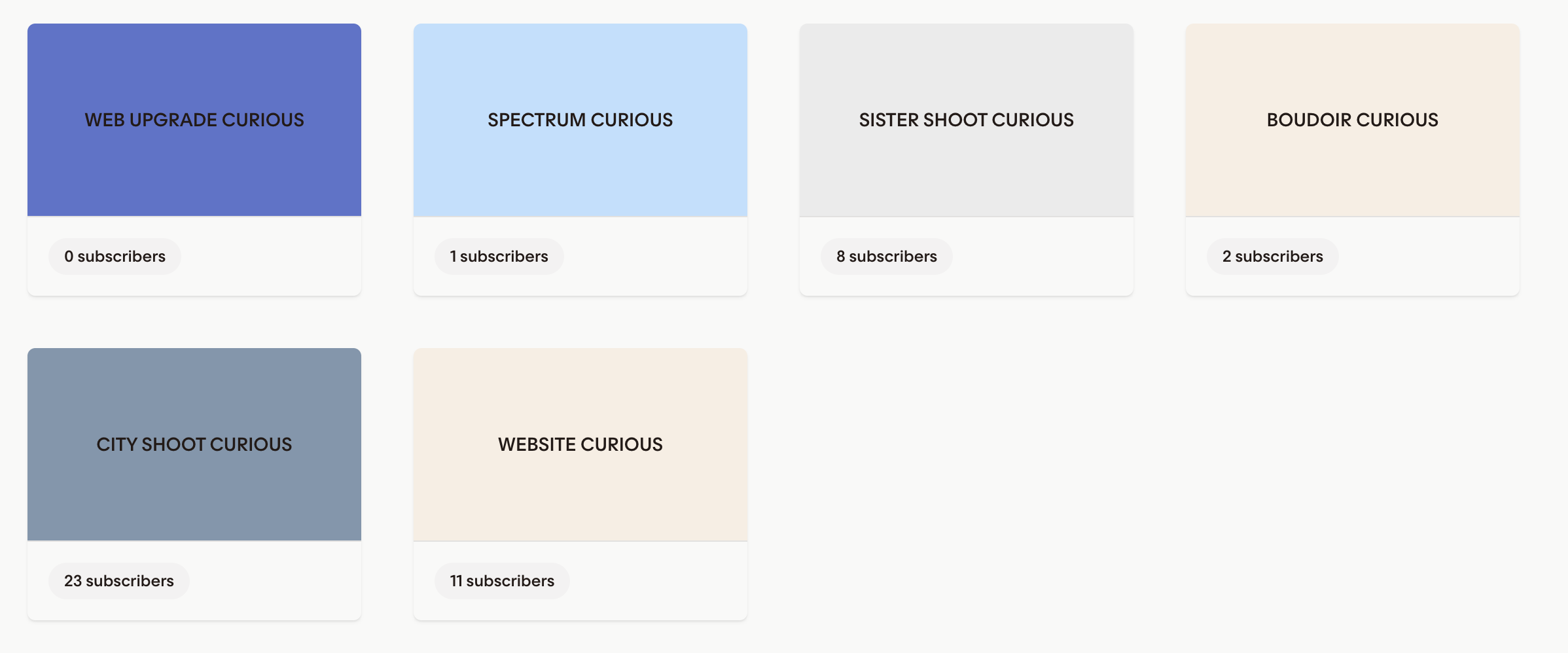 These are some of my audience segments set up. These will automatically update whenever someone clicks on a button in the my emails regarding one of these offers. It helps because then I can go into these segments and unpack more of the data + analytics relating to each person.